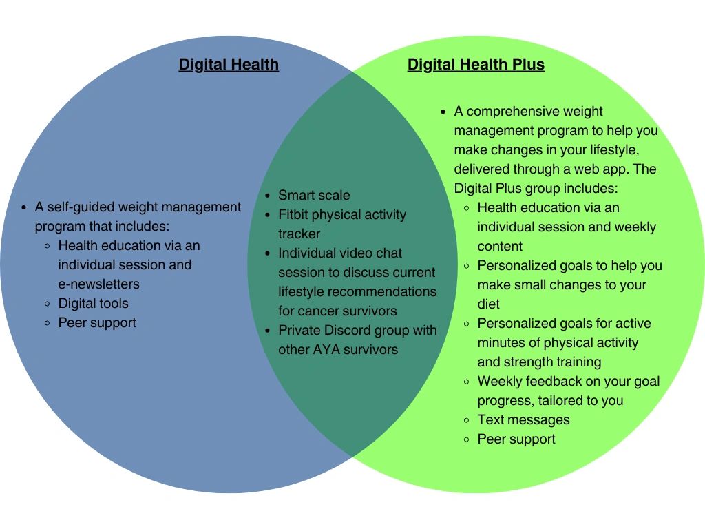 AYA WELL is a no-cost research study that provides adolescent and young adult cancer survivors with tools and strategies to manage their weight and improve diet quality and physical fitness.